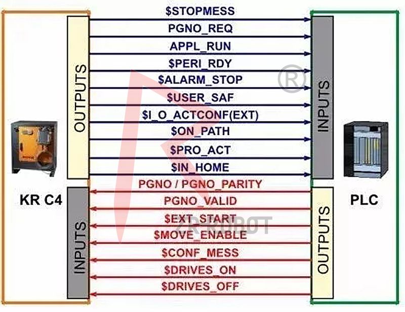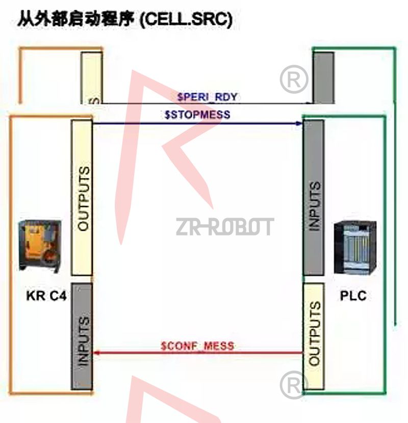 1.通過外部自動(dòng)運(yùn)行接口可用上級(jí)控制器(例如用一個(gè)PLC)來控制機(jī)器人進(jìn)程